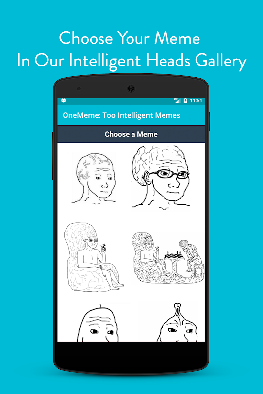 Die App enthält meme Galerie für das fühlt sich wenn zu intelligenten Köpfe. Sie können eine Ihrer Lieblings-Meme scrollen und auswählen. Geben Sie Ihre lustigen Kommentare und mit Ihren Freunden teilen. Oder speichern Sie es einfach für später. Erstellen Meme noch nie einfach gewesen, dass. Sie können eine intelligente Leiter für einschließlich unserer Galerie anfordern. Auf diese Weise können Sie in Ihrem Meme verwenden und auf Ihrem Meme und lustig kreativ sein.
