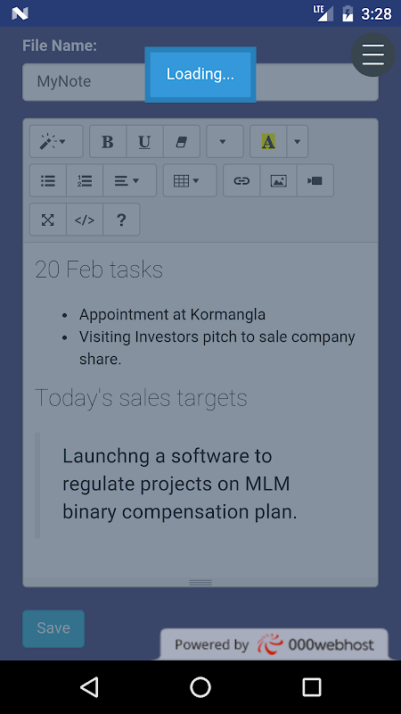 Schreiben und unbegrenzte Notizen online mit einem Rich-Text-Editor speichern.