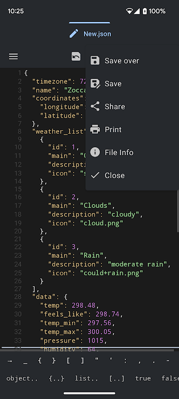 Sie können Ihre Dateien im Format .html, .js, .txt oder einer anderen Nur-Text-Dateierweiterung speichern und mit anderen Apps teilen.