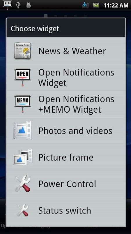 -Added nur die Funktion des offenen Statusleiste Widget.