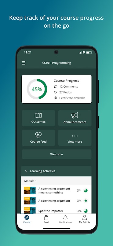 Verfolgen Sie Ihre Fortschritte, sehen natürlich Ereignisse und bleiben up-to-date mit den Anmeldungen für die Kurse, die Sie in eingeschrieben sind. Jeder Kurs abgeschlossen haben, werden Sie mit neuen Fähigkeiten bieten, Fortschritt Potenzial Karrierechancen, und verbinden Sie mit mehr und mehr Menschen, dass Aktien deine Interessen.