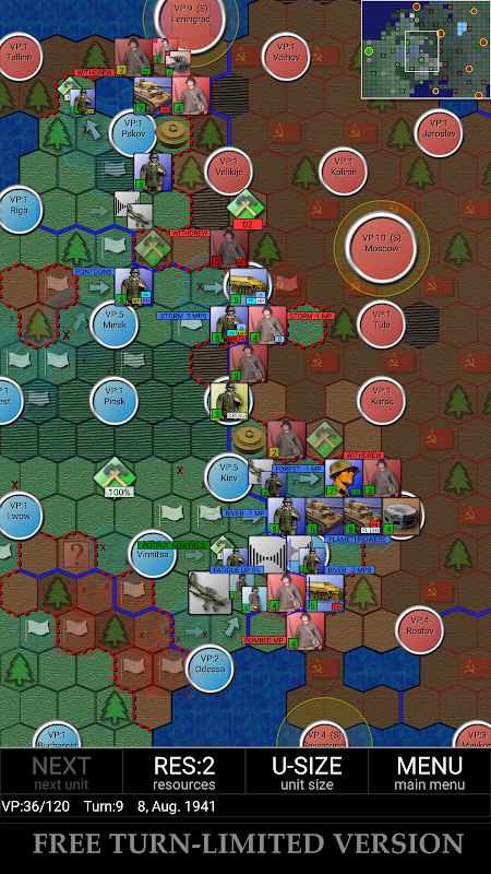 Dies ist eine rundenbegrenzte Version von Operation Barbarossa, einem hoch bewerteten rundenbasierten Strategiespiel an der Ostfront während des Zweiten Weltkriegs.