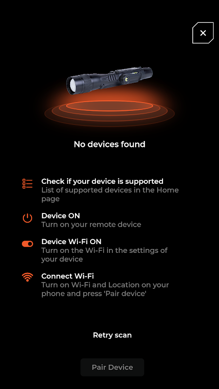 Willkommen bei OPTIX C2, dem ultimativen Begleiter zur Steuerung Ihres Optix-Wärmebildgeräts direkt von Ihrem Smartphone aus. Mit OPTIX 2C können Sie sich nahtlos mit jeweils einem Optix-Gerät verbinden und dieses verwalten und bieten so beispiellose Steuerungs- und Überwachungsfunktionen.