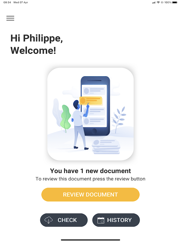 OPUS Media ist eine einfache Anwendung, mit der Benutzer Dokumente einfach von ihrem Telefon oder Tablet empfangen, verstehen und signieren können