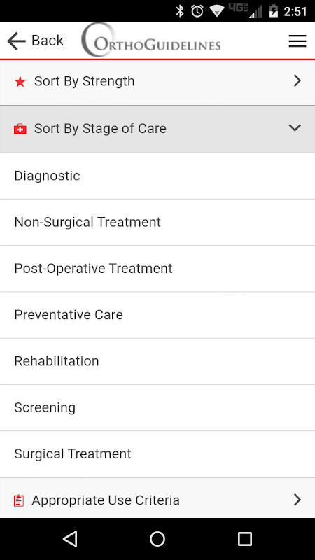 OrthoGuidelines ist die Heimat für AAOS hochwertige Produkte, wie beispielsweise medizinischer Leitlinien und sinnvollen Einsatz Kriterien. Benutzer können alle Leitlinienempfehlungen von orthopädischen Erkrankung, Spezialität, Stichwort, ES und / oder Phase der Pflege navigieren. Die Plattform wurde mit prägnanten Leitlinie und Empfehlung Themen zur Unterstützung bei schnellen Navigation, Verstehen, und der klinischen Anwendung ausgelegt. Benutzer können auch alle AAOS Empfehlungen, Begründungen und entsprechende Verwendungskriterien mit einem einzelnen Keyword-Suche suchen. Die App bietet evidenzbasierte Empfehlungen am Point of Care Kliniker mit der klinischen Entscheidungsfindung und Kliniker-Patienten Diskussionen zu unterstützen.