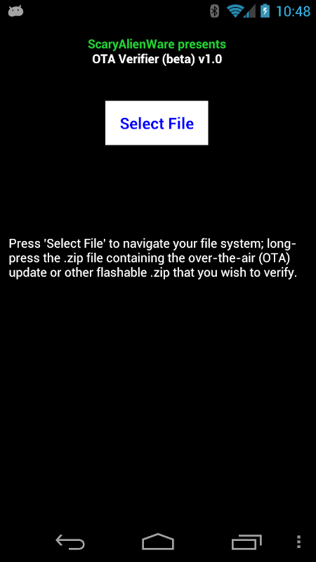 Die OTA Verifier app kann verwendet werden, um ein Over-the-Air (OTA) update.zip oder andere flashbar .zip-Datei zu bewerten, bevor Sie die Installation oder danach um Ihnen zu helfen, herauszufinden, warum die Installation versuchen möglicherweise fehlgeschlagen. OTA Verifier wird Punkt-out, welche Dateien und Bedingungen werden derzeit getestet, so dass Sie leichter versuchen, diese Probleme zu beheben.