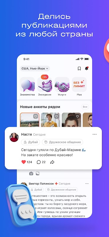 Romantisches Dating, Kommunikation, Freunde finden nach Stimmung – all das finden Sie in OURS, einer App, mit der Sie ganz einfach Freunde treffen und finden können. Darüber hinaus können Sie hier einfach und schnell Ihre Freizeit organisieren, Dienstleistungen und einzigartige Ausflüge buchen. Und das alles – überall auf der Welt!