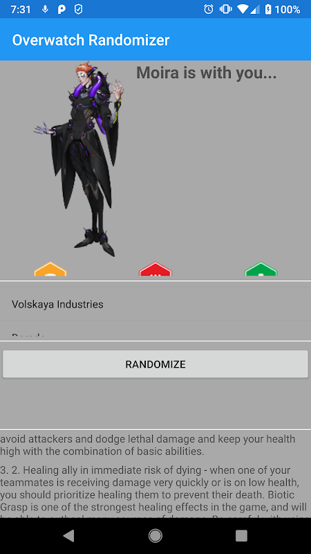 Having trouble choosing a character when playing Overwatch? Use our app to help you decide and try a new character! Please shoot us an email if you have any suggestions for us.