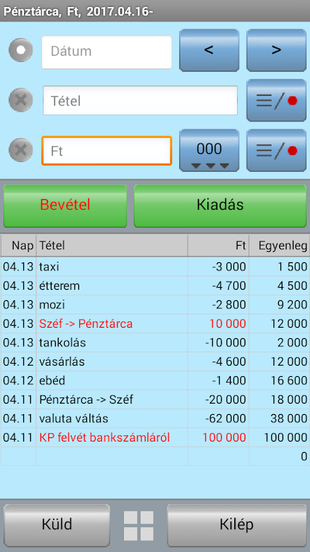 In dieser Anwendung verzeichneten die pénzmozgásainkat (Erträge und Aufwendungen) leicht.