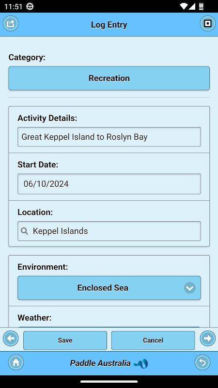 Paddle Log ist benutzerfreundlich Logbuch mit der Fähigkeit, frühere Aktivitäten zu kopieren und zu bearbeiten. Es werden die Nutzer ermutigen jederzeit auf ihrem mobilen Gerät ihr Logbuch aktuell zu halten. Die aufgezeichneten Daten sind geeignet für die Einreichung Australien (PA) paddeln, wenn für eine Paqs Qualifikation Anwendung.