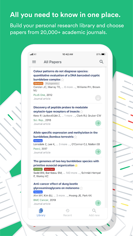 - Fügen Sie Ihrer Sammlung mit einem Fingertipp neue Papiere hinzu, und das PDF wird automatisch heruntergeladen.