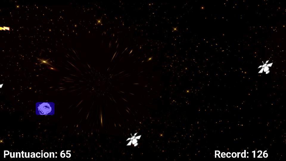 Sie sind ein Asteroid reisen Raum und Zeit. Zerstöre alle bösen Satelliten!