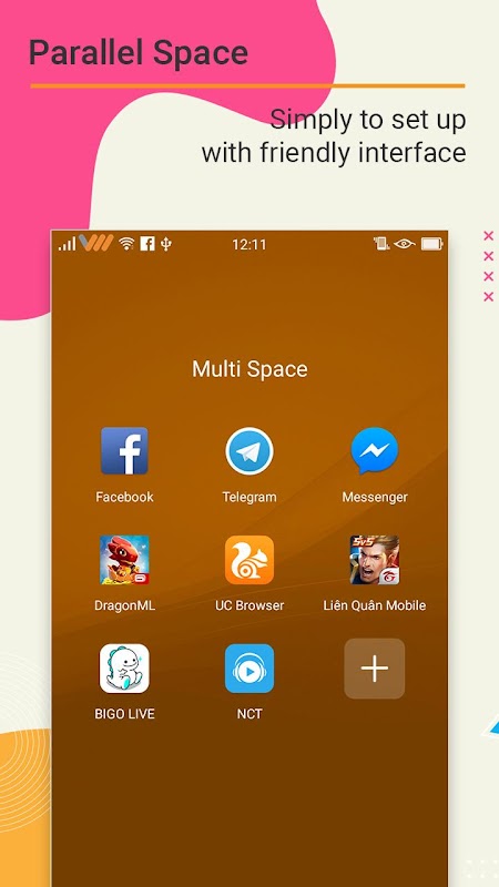 Parallel space multi accounts : dual space will help to handle two girlfriends at same time with multiple account of same social media application. Dual space will help to handle two boyfriends at same time with multiple account of same social media application like hike , whatsapp, etc.