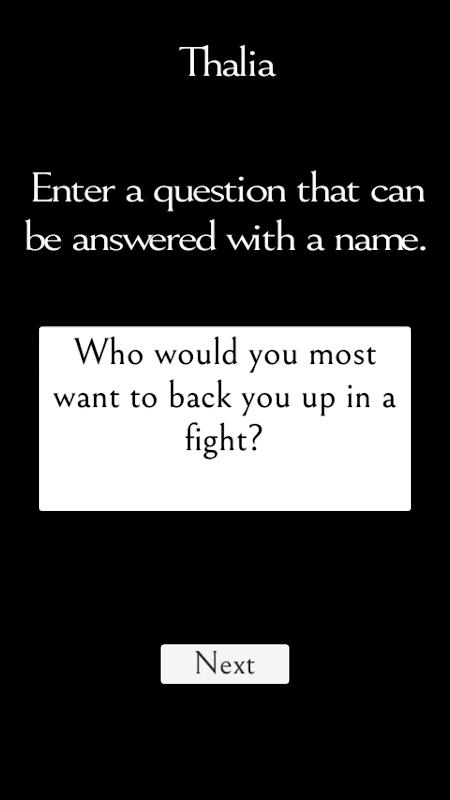 - One person will secretly ask another player a question that can be answered with a name.