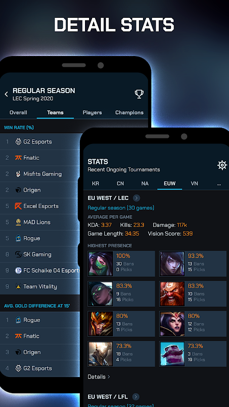 League of Legends Pro-Spielplan, Spielstände, Ranglisten, Statistiken