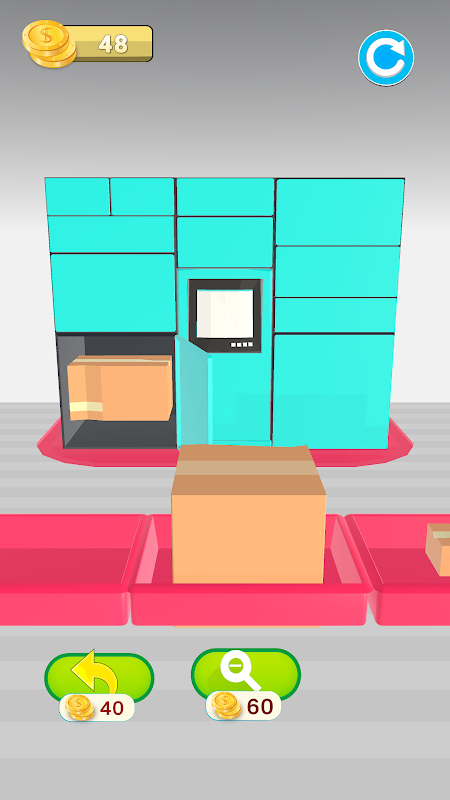 Pakete sortieren: In jedem Level erhältst du eine Reihe von Paketen, von kleinen Kartons bis hin zu großen Paketen. Deine Aufgabe ist es, sie in den Fächern des Fachs zu platzieren.