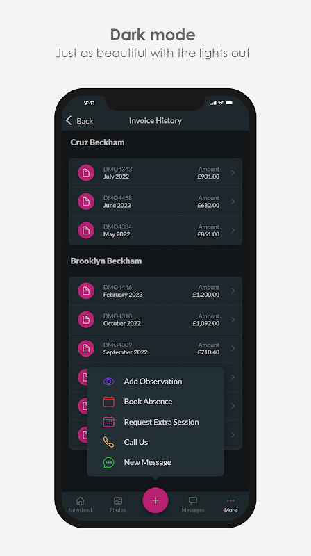 Eltern können Benachrichtigungen direkt an die Kinderkrippe senden, die Änderungen des Buchungsmusters, zusätzliche Sitzungen, Änderungen der Notfallkontaktdetails, neue Allergieanforderungen usw. anfordern. Die Kinderkrippe kann auch Benachrichtigungen an Eltern senden, die sie über Notfallschließungen, Newsletter usw. auf dem Laufenden halten.
