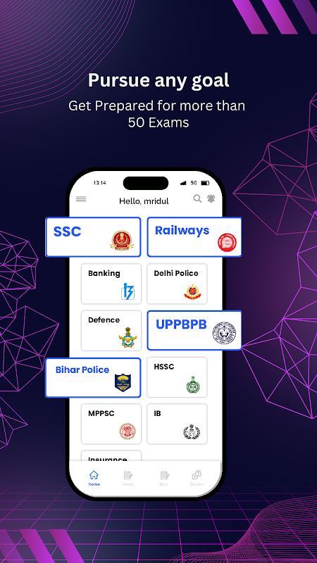 Mock-Testplattform für Prüfungen wie SSC, Eisenbahn, Verteidigung und andere Prüfungen auf Landesebene.