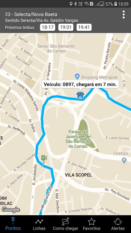 - Favorite o ponto e as linhas de ônibus de sua preferência para a previsão de horários.