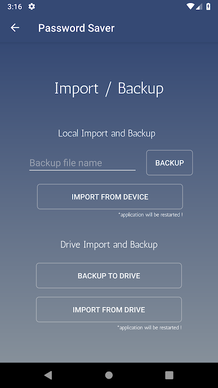- Easy Import and Backup with local storage and Google Drive. (GET PRO)
