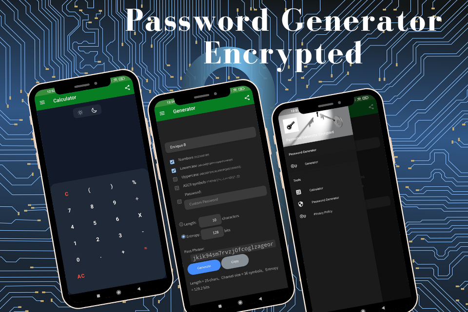 Generieren Sie Passwörter im ASCII-Code mit 128 Bit und mehr mit dieser verschlüsselten Passwort-Generator-App.