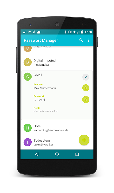 Der Password Manager ist die einfachste Möglichkeit, deine Passwörter immer dabei zu haben. Die App ist absolut sicher und benötigt nur Zugriff auf den Speicher, wenn du ein Backup erstellen willst oder eins importieren möchtest.