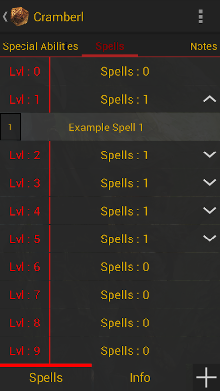 10) Zaubersprüche werden durch Ebene kategorisiert. Sie können auch sehen, wie viele Zauber eines jeden Levels die Sie kennen.