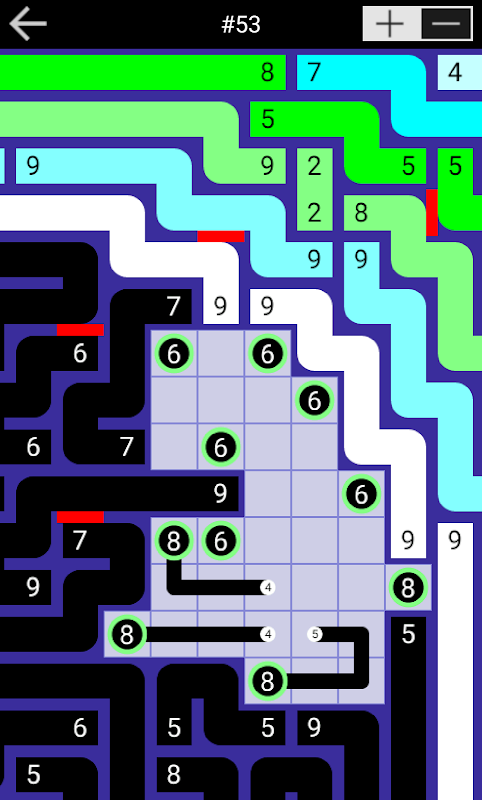 Zeichnen Sie helle, kräftige Farblinien, um Pfade zu erstellen, die Paare von farbigen Zahlen verbinden. Die Länge jedes Pfades muss den Zahlen entsprechen, die Sie verbinden.