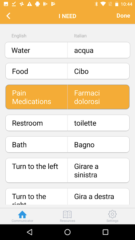 - Übersetzungsfunktionen, die eine bidirektionale Kommunikation in 18 Sprachen zu verschiedenen Themen ermöglichen, z. B. Schmerz, Grundbedürfnisse, Gefühle und Stimmungen