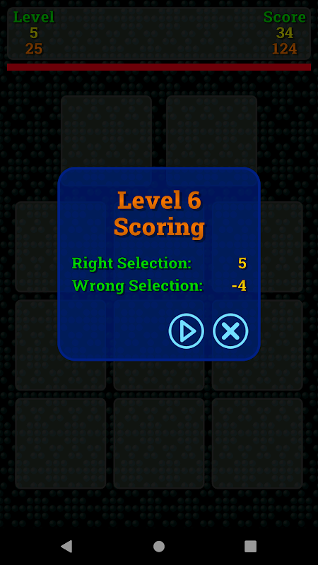 Finde die fehlenden Punktmuster für ein Symbol aus einer Reihe zufälliger Muster. Klingt einfach, ist aber schwieriger als gedacht. Mit zunehmendem Fortschritt werden weitere Symbole eingeführt und weitere Punkte fehlen.