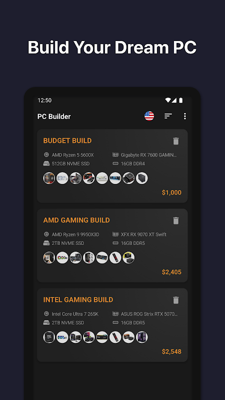 Bauen Sie Ihren eigenen PC! Diese App hilft Ihnen dabei, PC-Build-Ideen für Ihren Gaming-PC oder Ihre Workstation zu finden. Sie können Teile mit Kompatibilitätsfilter auswählen oder Builds basierend auf dem Budget generieren. Wir arbeiten ständig an weiteren Verbesserungen und Funktionen. Auf dem Laufenden bleiben!