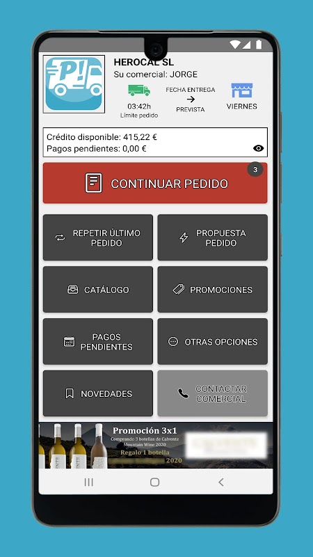 Aplicación para profesionales de la Hostelería, Restauración y/o tiendas tradicionales de alimentación, permite realizar sus pedidos de forma cómoda y sencilla a sus distribuidores de confianza.