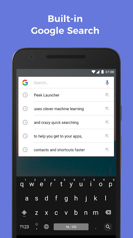Mithilfe moderner Algorithmen schlägt dir Peek Launcher genau die App vor, die du gerade brauchst. Peek Launcher lernt aus deinen Gewohnheiten und wird automatisch besser je länger du die App verwendest.