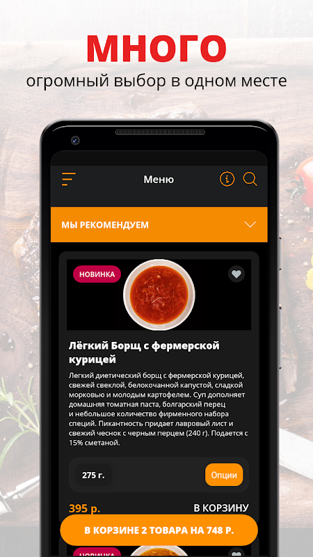 Die PeliBox-App ist eine bequeme Möglichkeit, Essen nach Hause oder ins Büro zu bestellen! Wir bereiten unsere Gerichte aus hochwertigen frischen Zutaten zu und liefern Speisen in St. Petersburg schnell und sorgfältig aus.