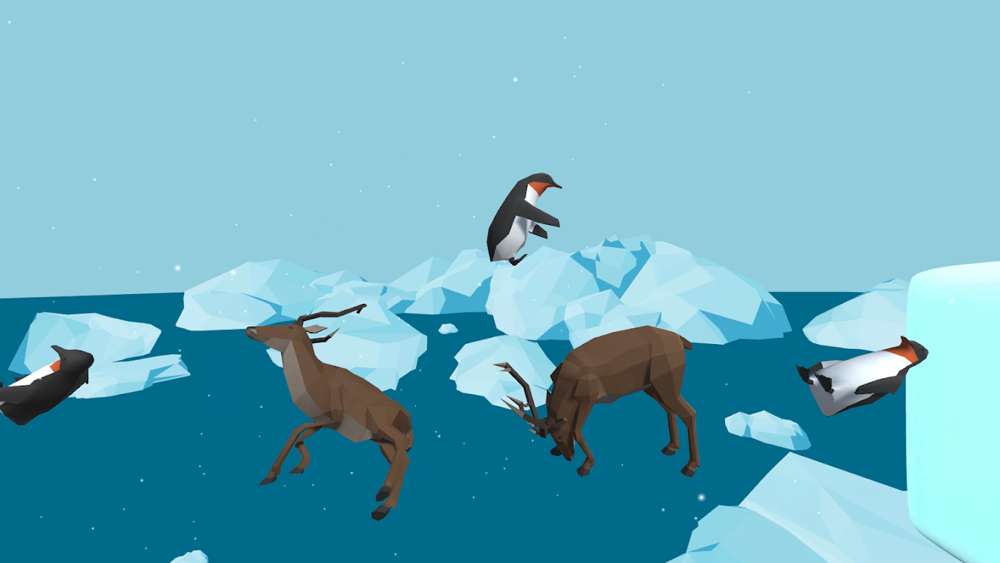 Can you make the penguin jump and reach the freezer while riding on the cute animals?