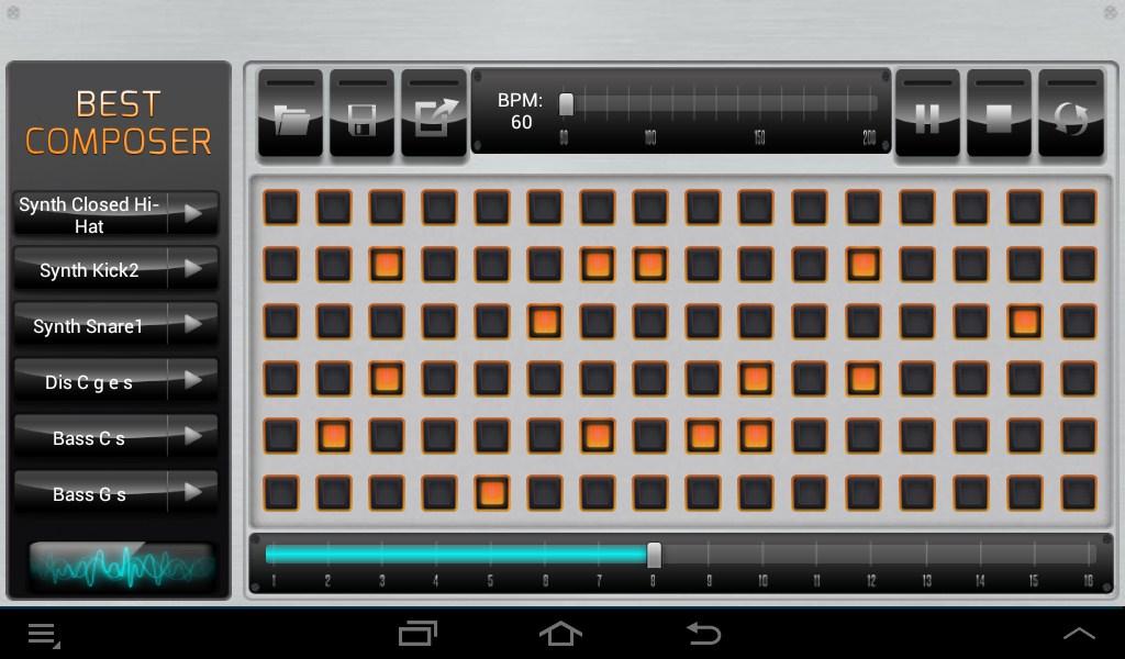 Mit der Anwendung Best Composer können Sie Ihre eigenen einzigartigen Musikbeispiele erstellen, indem Sie aus 103 Sounds in Kategorien wie Dubstep, Gitarren oder Schlagzeug auswählen.