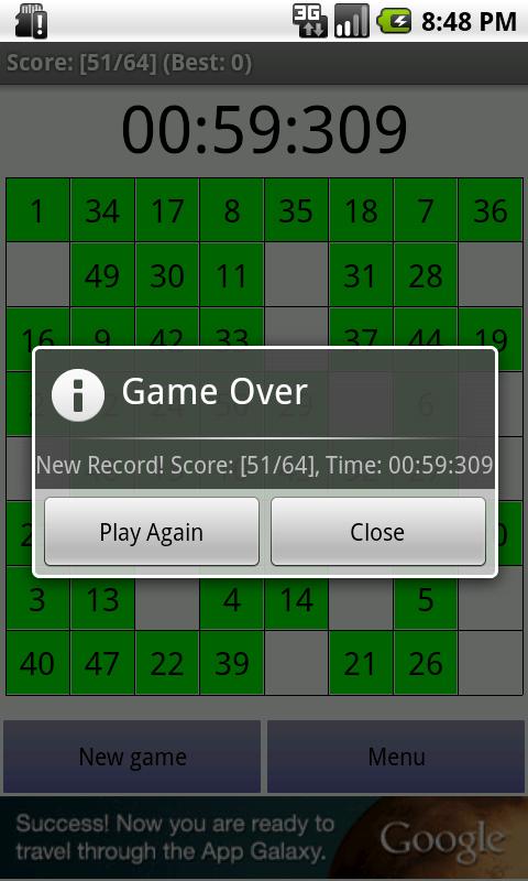 Perfect Square is a fast and addictive puzzle game available on Android! It is a variant of the Knight's Tour puzzle and uses 7x7 or 8x8 grids.
