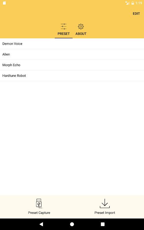 - Import und Export Presets mit 3rd-Party-Wolken wie Google Drive, Dropbox, oder per E-Mail, Bluetooth oder an anderen Anwendungen senden.