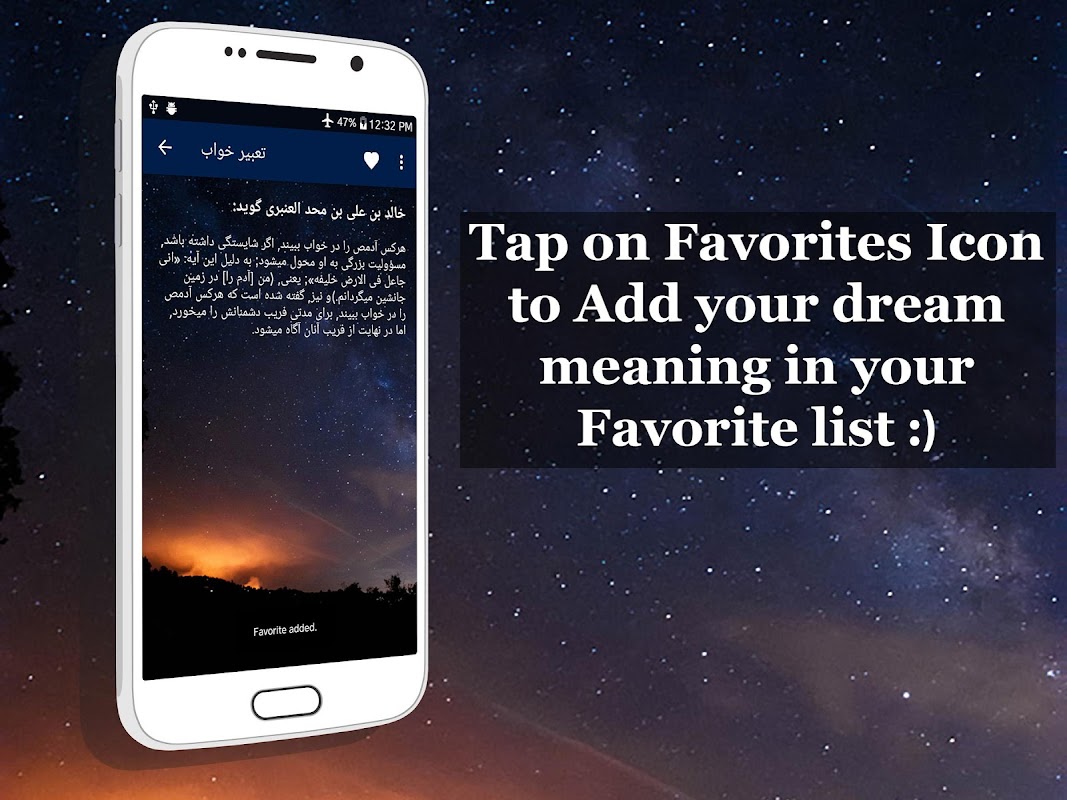 تعبیر خواب فارسی - Persian Dream Interpretation is a complete offline Farsi dream meaning app with Farsi font which does not need any additional features on your mobile device. You can search any dream and then click on it to read its meanings and interpretation in Farsi / Persian language. Interpretations and meanings are displayed in real Farsi/Persian language not romanized. Translation is without any flaw / conflict. It provides the most complete and most compact software Persian dream interpretation with more than a million words and more than 4,000 searchable topics.
