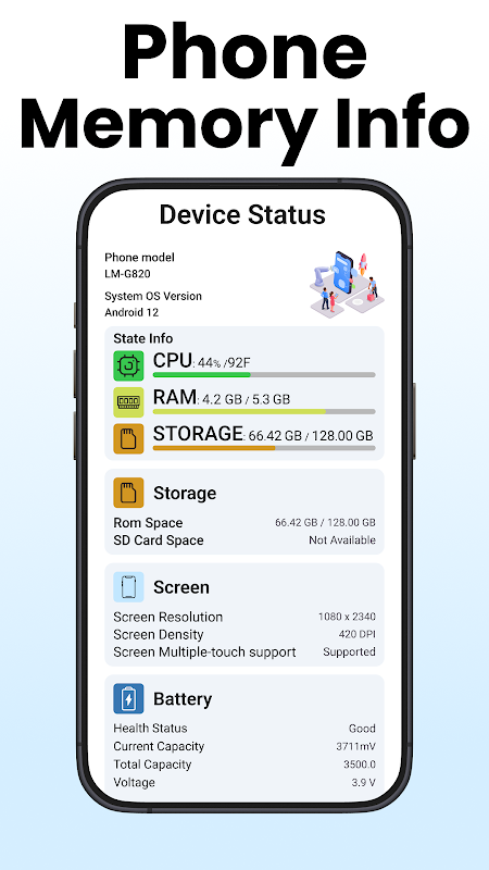 Check device info Screen Test, Internet Speed, Phone Temperature, Battery Status