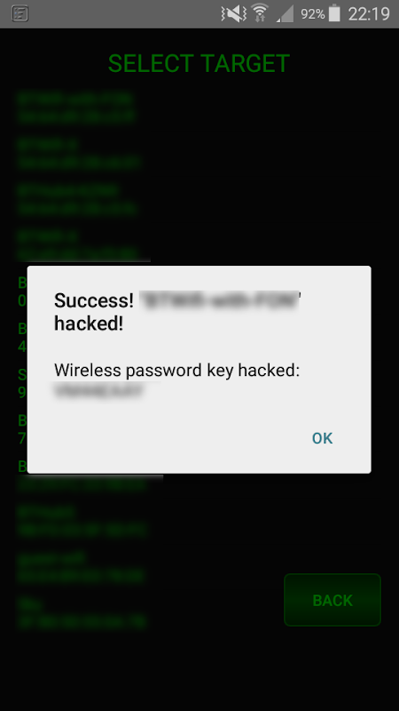 Dies ist eine PRANK-App und wird nicht zeigen Ihnen echte Passwörter (nur zufällig generiert Passwörter und Pin) oder wirklich hack in Geräten oder WiFi-Netzwerken. Allerdings zeigt es Ihnen echte Wireless-Hotspots / Netzwerke (von einem WiFi-Scan) und Bluetooth-Gerätenamen (in der Nähe) - weswegen die Bluetooth-Berechtigungen angefordert werden. Es zeigt auch gefälschte Local Area Network IP-Adressen + MAC-Adresse.