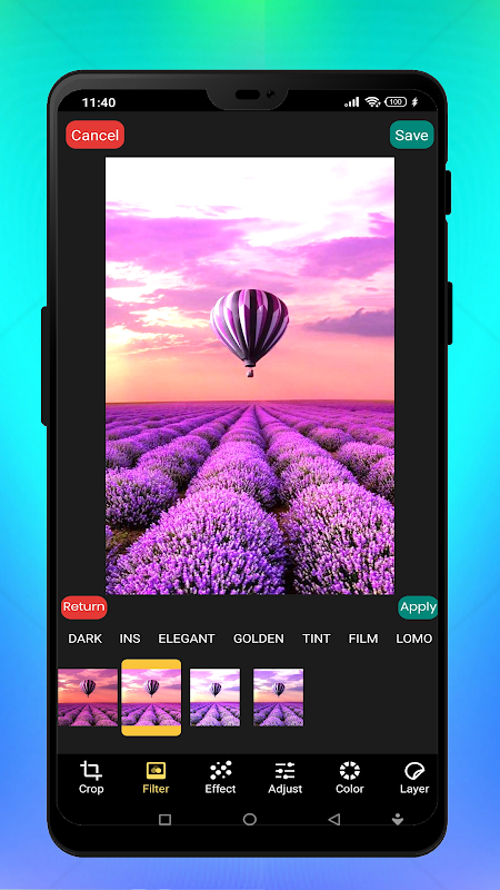 ● Fotos zuschneiden und mit Filtern bearbeiten.