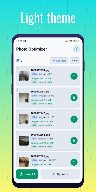 Photo Optimizer ist eine schnelle, kostenlose und leistungsstarke App, die die Größe Ihrer Fotos um 70–90 % reduziert – ohne Qualitätsverlust.