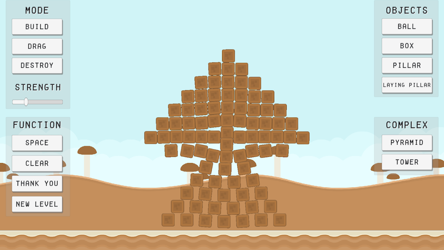 Erstelle, werfe, baue und zerstöre Objekte in diesem lustigen und niedlichen 2D-Physik-Sandbox-Spiel.