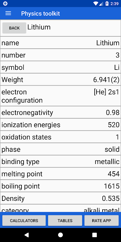 Physik-Toolkit ist ein Physik-Rechner, der für Physik-Berechnungen verwendet werden kann. Es enthält viele Rechner und Tabellen, eine Liste gemeinsamer Formeln und Informationen über alle Elemente. Physik Toolkit ist ein Must-Have-App für Physikstudenten und Profis.