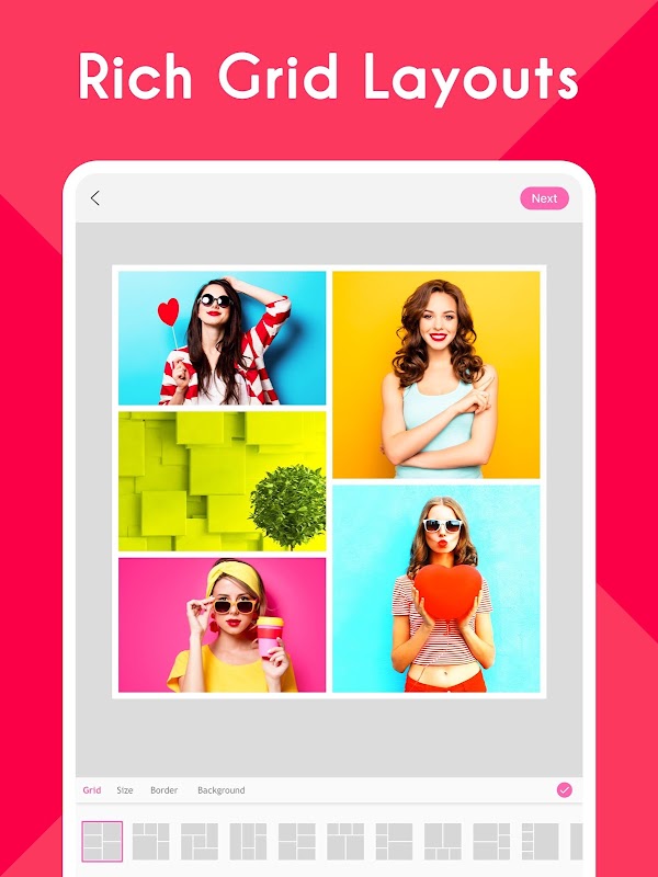 Pic Collage Maker editor is a powerful free photo grid, college photo maker and photo editor pro for you to create amazing collage pics grid photo using emoji stickers, cute backgrounds, cool background color, love images and funny pictures effects with candy layouts and powerful pics grid photo.