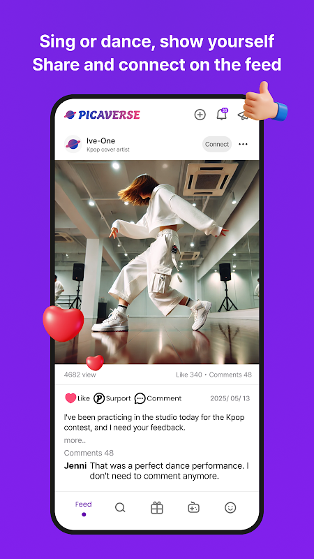 PICAVERSE is a K-POP content platform where fans around the world who love K-POP can upload their own content, participate in global auditions and cover dance competitions, and get a chance to make a real debut.