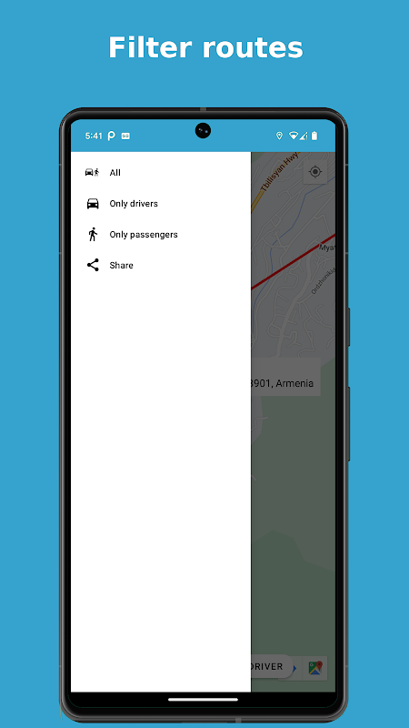 Wenn Sie ein Passagier sind, geben Sie Ihre Route ein und ein Fahrer mit derselben Route bringt Sie günstiger als ein Taxi.
