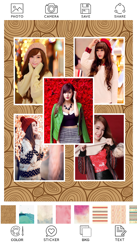 Easy collage photos with art background, text and typographic sticker. Picture Collage: Quick combine your photo become art photo with art background, beauty font and awesome typography sticker. You have more than 40 nice background to create art collage. Addition, you can choose background from your gallery with blur effect or chose color background. With photo, you can choose photo from your gallery or take new photo.