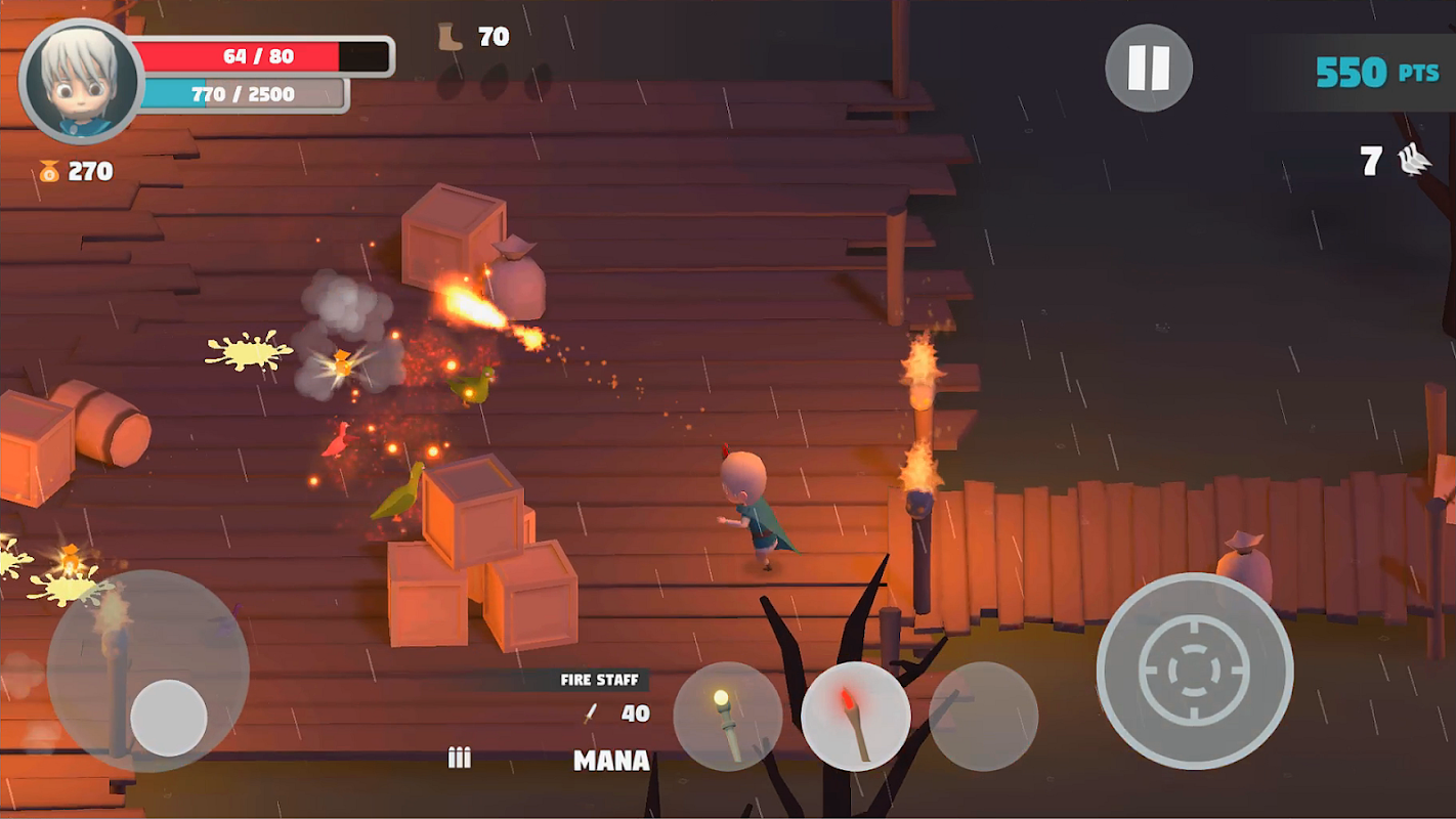 Pigeons Attack ist ein Top-Down-Shooter mit Kampfelementen. Ziel ist es, so lange wie möglich gegen Taubenhorden zu überleben – allein oder mit Freunden im Online-Mehrspielermodus. Erkunde verschiedene Levelpfade, um Upgrades und neue Waffen zu erhalten. Sammle Münzen, um neue Charaktere, Level und Skins freizuschalten. Hilf mit, diese Invasion zu bekämpfen!